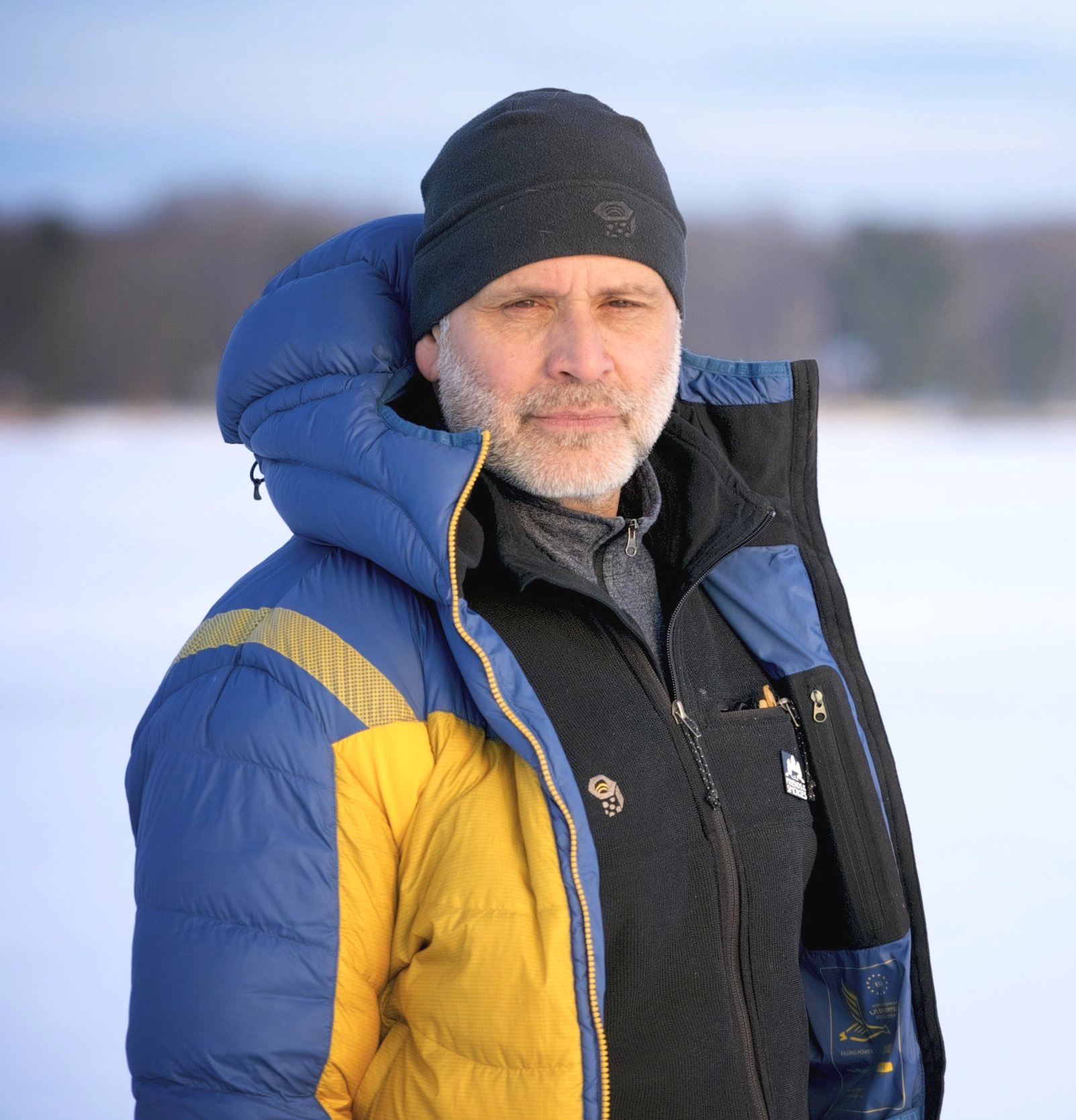 Photo of me on a frozen lake in the north woods of Minnesota by my nephew Riley Huff